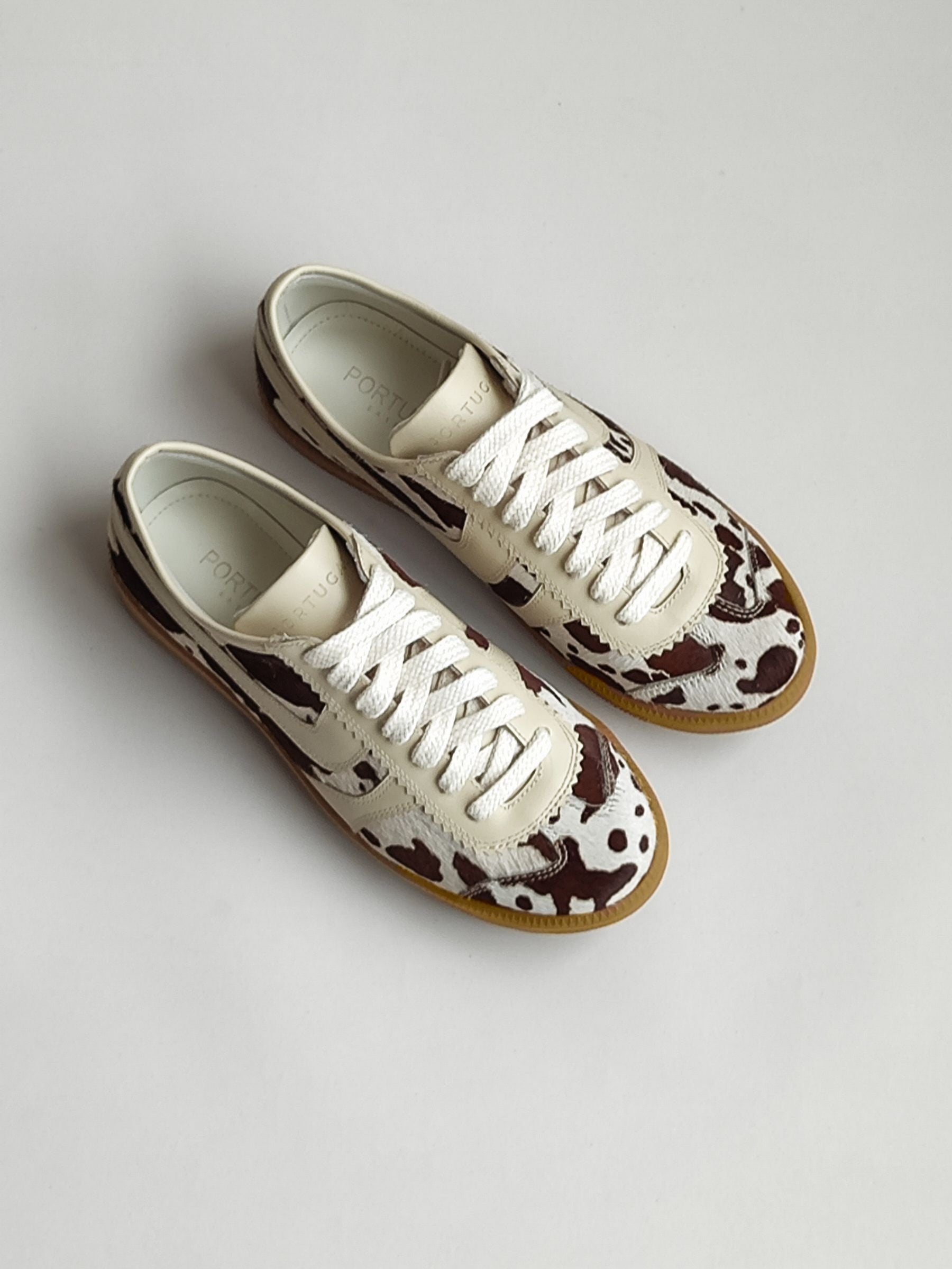 Material: Cuero vacuno de pelito estampado y cuero liso color amarillo mantequilla.